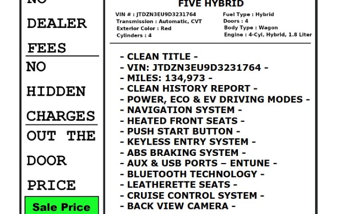 The 2013 TOYOTA PRIUS V FIVE HYBRID is available for sale. It is a Clean Title with clean history report. It is in excellent condition as well as excellent ratings on various automobile forums. -