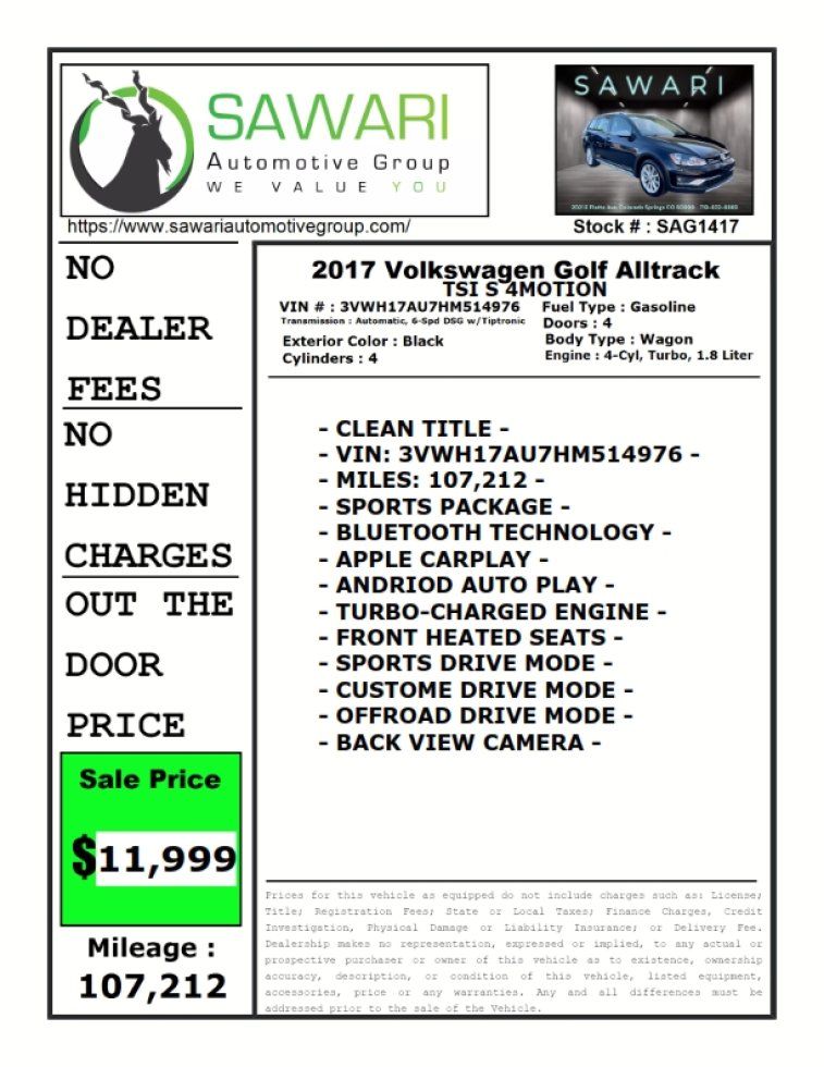 The 2017 VOLKSWAGEN GOLF ALLTRACK TSI S 4MOTION AWD is available for sale.
